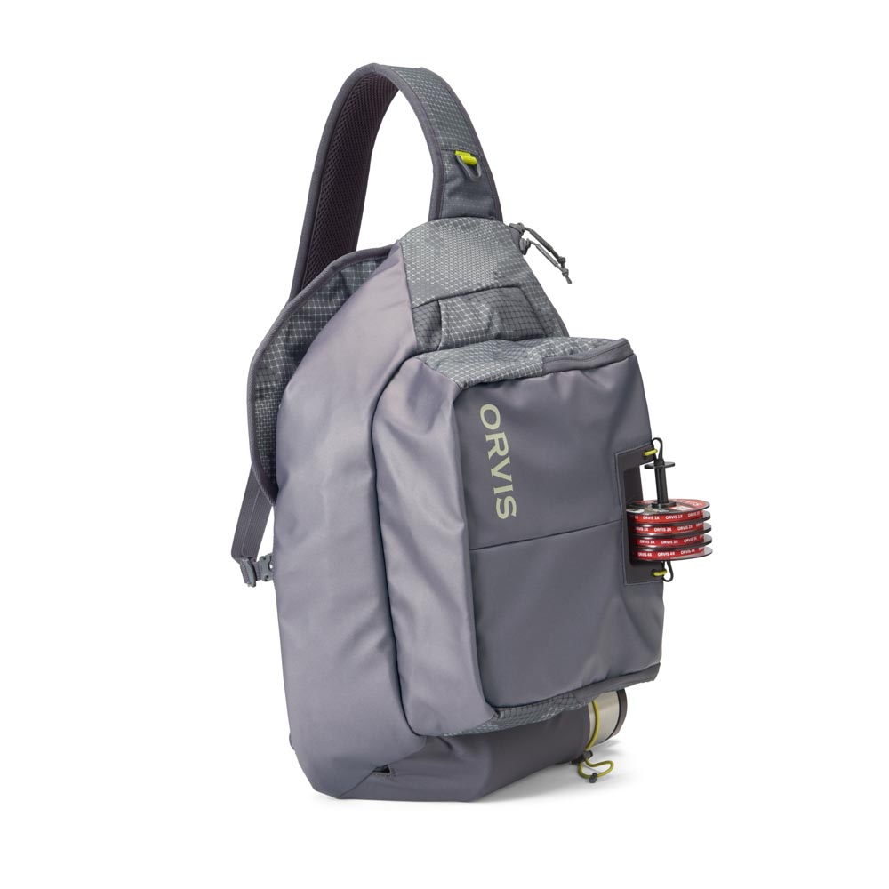 Version XL du sling pack original - Support bobine intégré - Rangement pour épuisette - Bandoulière avec petite poche et porte-accessoires - Bande velcro - Multiples petites poches internes - Poche de rangement et filet extensible - Extérieur 100% CORDURA® 610D avec 40%de matériaux recyclés - Doublure nylon 200D 100% recyclé - Contenance 18L