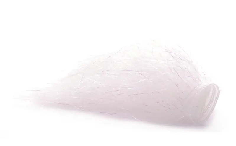 Fibres transparentes et nacrées cousues d'un côté, adaptées au montage de gros