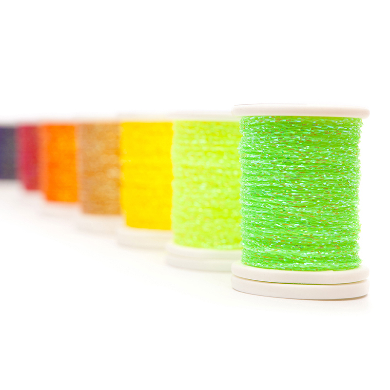 montage de corps entiers et de nervures partielles. On peut aussi la défaire, en extrayant les fibres qui composent la tresse, pour obtenir un Mylar plat pour la réalisation d'ailes ou de queues de petites mouches. Pour obtenir des variations de couleurs intéressantes, il peut être enroulé sur d'autres fils de base, ce qui permet d'obtenir de multiples nuances de couleurs.