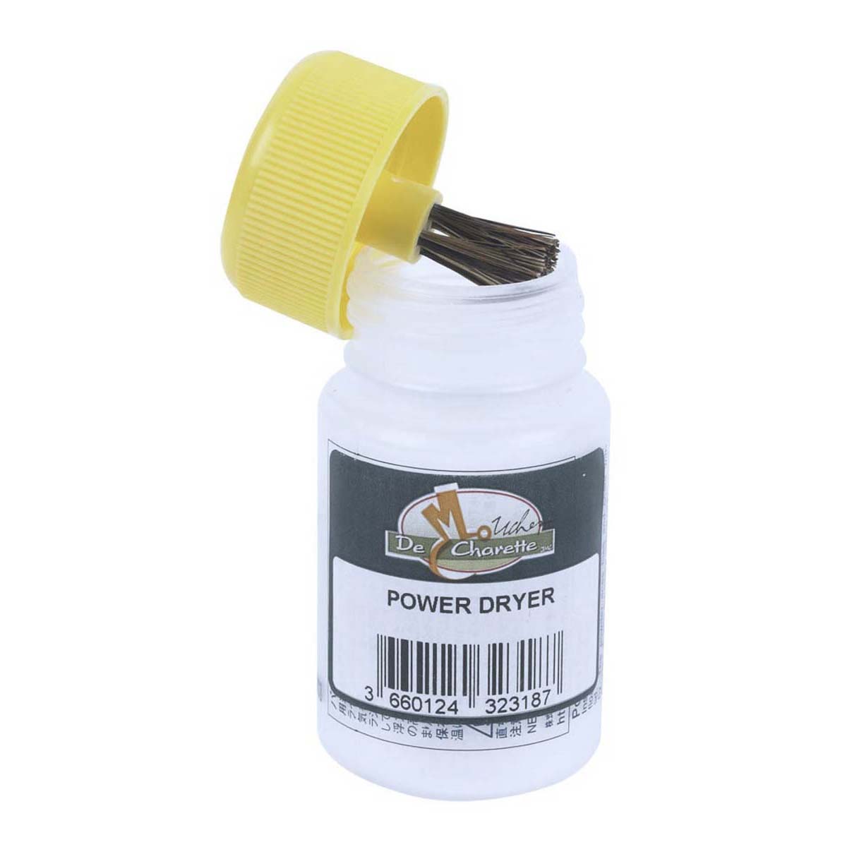 Produit similaire au dry shake mais pourvu d'un pinceau assez rêche qui permet de bien séparer les fibres et ainsi assurer une bonne répartition du produit.