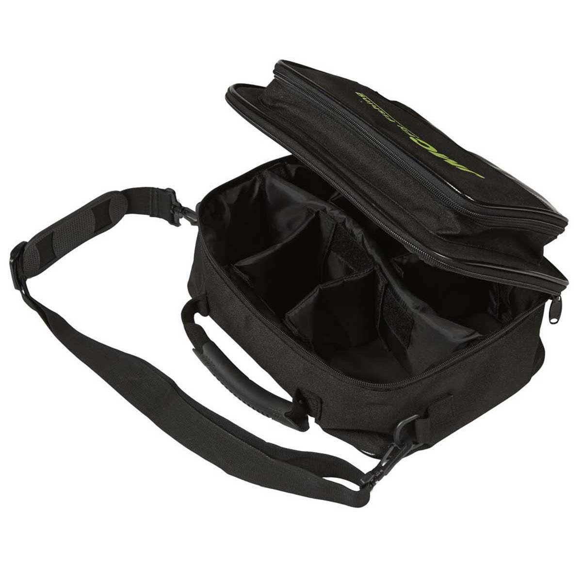 Sacoche matelassée munie de six compartiments pour ranger et transporter les moulinets en toute sécurité. La poche frontale est équipée de six pochettes cristal pouvant recevoir bas de ligne, polyleaders, et produits d'entretien des soies.
