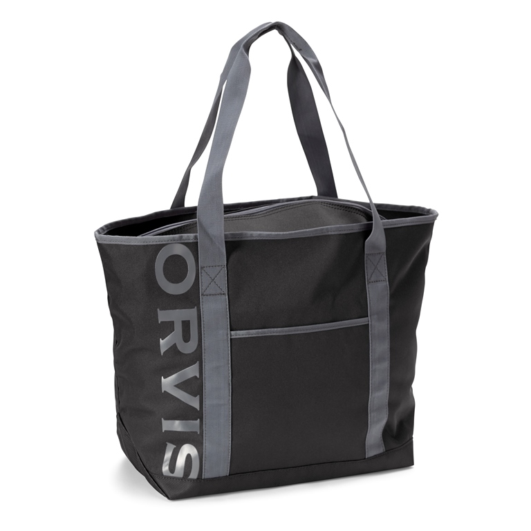 Sac fourre-tout – Polyester 6D – Solide armature PVC – Fermeture zippée sur le haut – 2 séparations intérieures. Dimensions : 35,56 cm H x 48,26 cm l x 22,86 cm P.